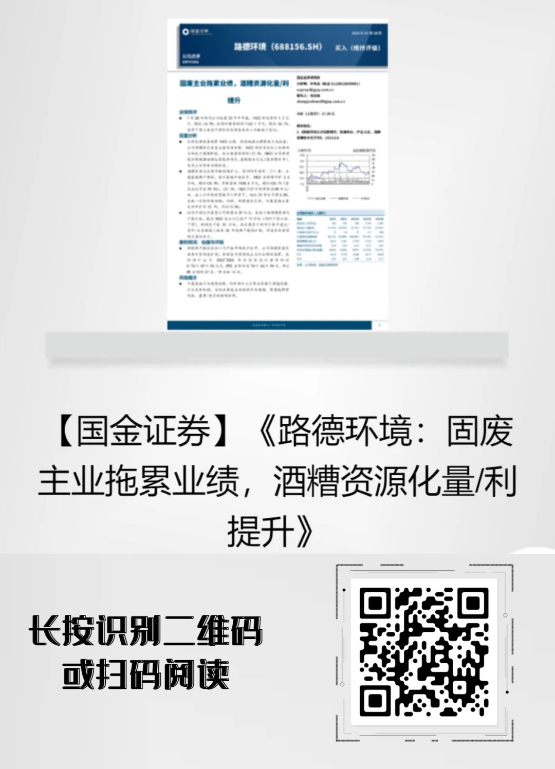 【點評報告】國金證券點評路德環(huán)境:固廢主業(yè)拖累業(yè)績,酒糟資源化量/利提升。