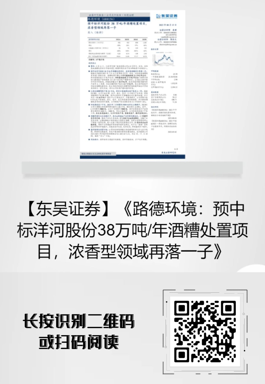 2023年8月11日,江蘇洋河酒廠股份有限公司公示《洋河、雙溝、泗陽基地酒糟處置項(xiàng)目中標(biāo)結(jié)果》,路德環(huán)境為洋河及泗陽標(biāo)段中標(biāo)候選人。東吳證券發(fā)布點(diǎn)評(píng)報(bào)告,對(duì)此事件進(jìn)行深入分析,并對(duì)公司業(yè)務(wù)現(xiàn)狀和未來發(fā)展前景給予肯定。