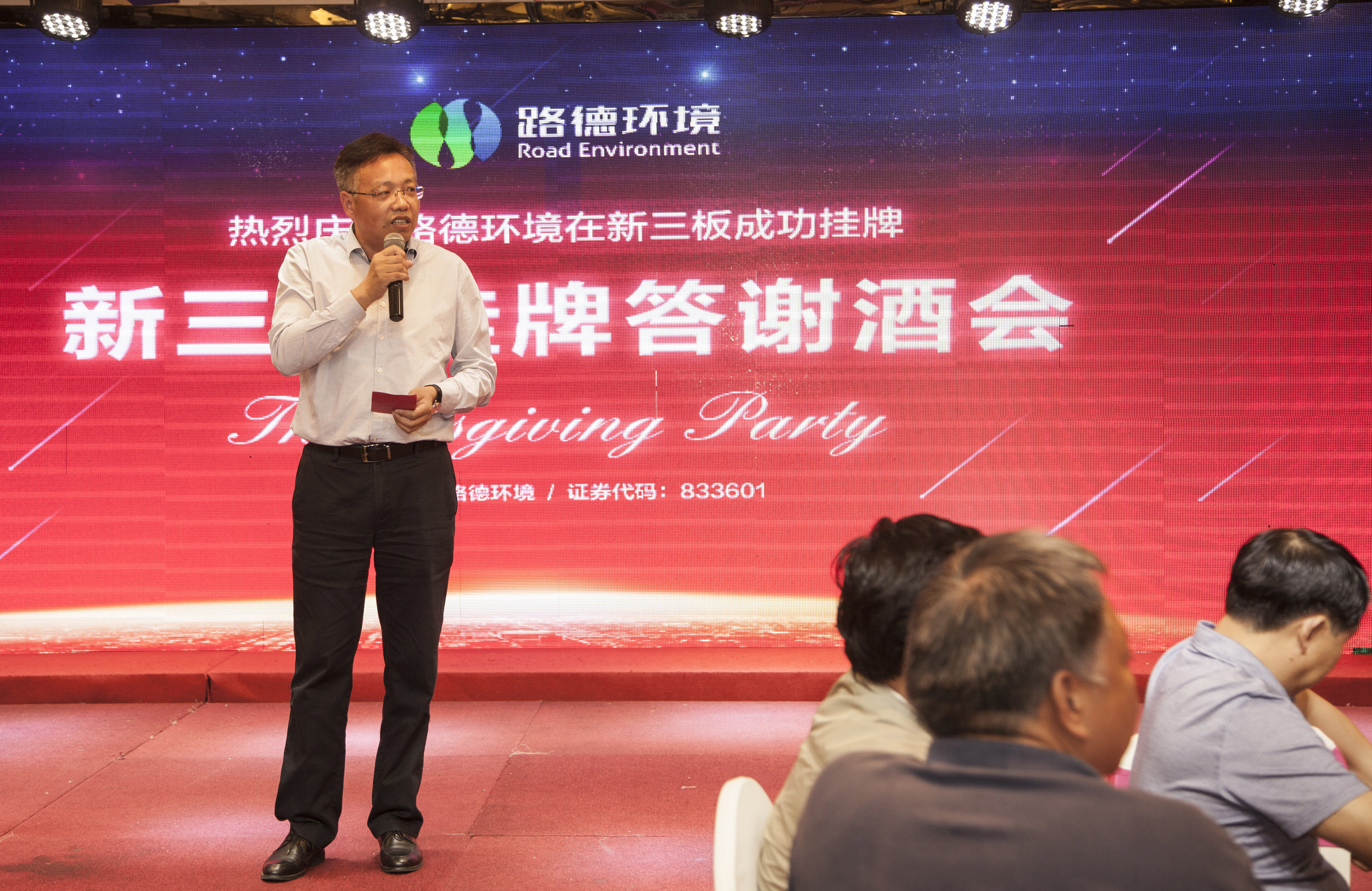 為慶祝代碼為833601的“路德環(huán)境”在2015年10月8號順利登錄新三板,10月9日晚,路德環(huán)境新三板掛牌答謝酒會在光谷紐賓凱國際大酒店宴會廳隆重舉行。