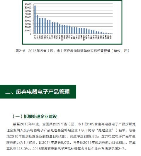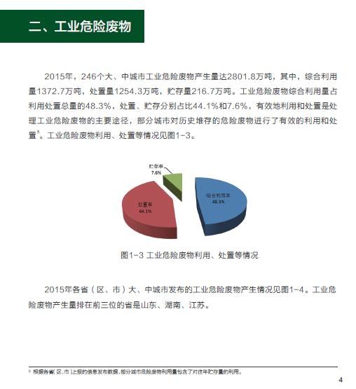 環(huán)境保護部今日發(fā)布《2016年全國大、中城市固體廢物污染環(huán)境防治年報年報》(以下簡稱《年報》),從全國大中城市固體廢物信息發(fā)布情況、全國固體廢物污染防治工作進展情況、全國固體廢物污染防治能力建設(shè)情況以及地方固體廢物污染防治工作實踐4個方面,系統(tǒng)介紹了2015年我國固體廢物污染防治工作的相關(guān)情況。