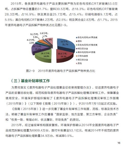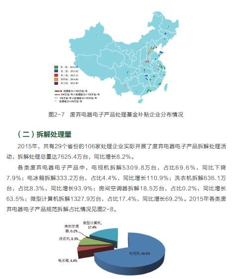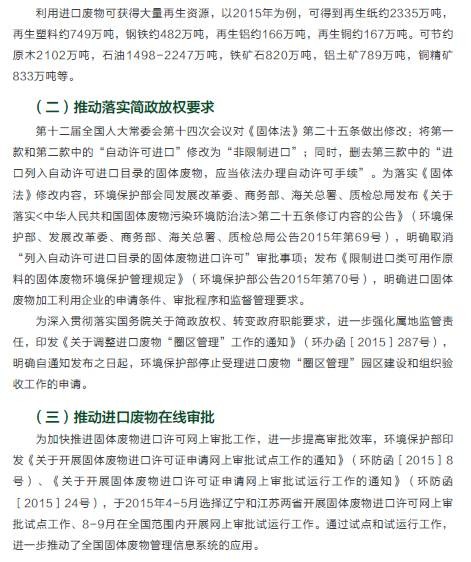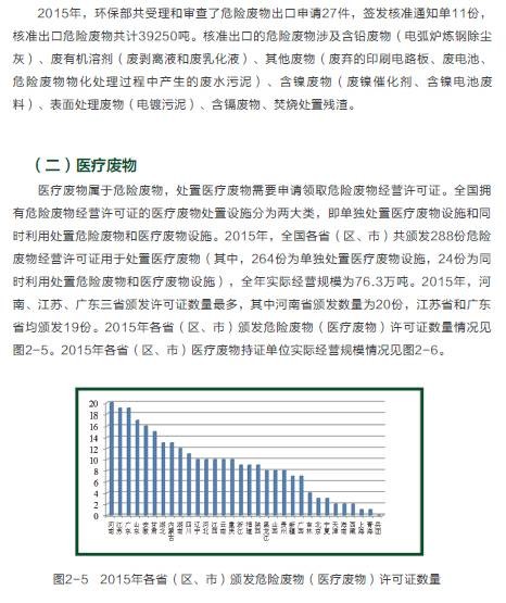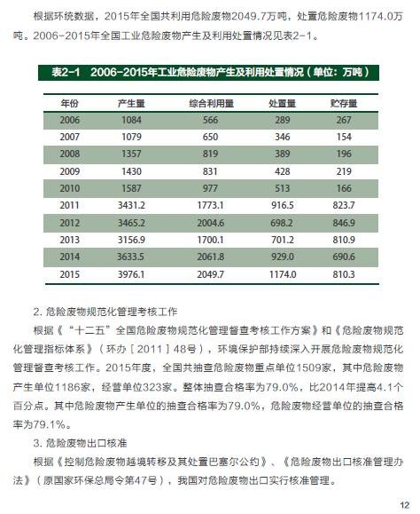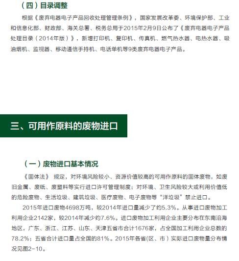 2015年,在危險廢物污染防治工作方面,全國各?。▍^(qū)、市)頒發(fā)的危險廢物經(jīng)營許可證共2034份,經(jīng)營單位核準(zhǔn)利用處置規(guī)模已達到5263萬噸/年,實際經(jīng)營規(guī)模為1536萬噸;持續(xù)深入開展危險廢物規(guī)范化管理督查考核工作,各環(huán)境保護督查中心共抽查1509家企業(yè),整體抽查合格率為79.0%,比2014年提高4.1個百分點。在電子廢物污染防治方面,全國共有29個?。▍^(qū)、市)的109家廢棄電器電子產(chǎn)品拆解處理企業(yè)納入廢棄電器電子產(chǎn)品處理基金補貼企業(yè)名單,廢棄電器電子產(chǎn)品年處理總能力為1.4億臺,實際拆解處理總量達7625.4萬臺,同比增長8.2%。在可用作原料的廢物進口方面,2015年進口廢物4698萬噸,同比減少約5.3%;從事進口廢物加工利用企業(yè)2142 家,同比減少約7.6%。