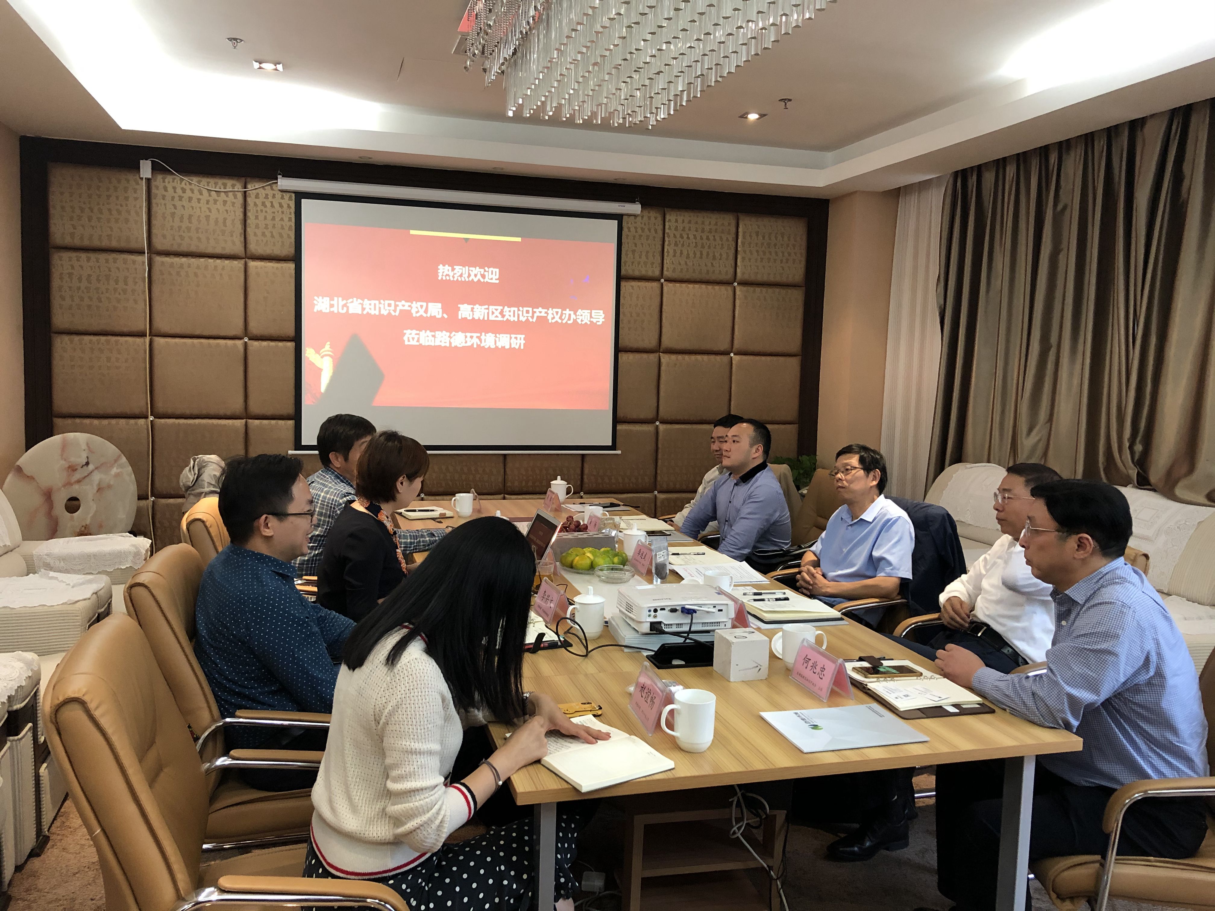 2019年10月14日,湖北省知識產(chǎn)權(quán)局副局長李述武、東湖高新區(qū)知識產(chǎn)權(quán)辦主任何兆忠等一行蒞臨路德環(huán)境調(diào)研,公司副總經(jīng)理程潤喜、董事會秘書劉菁等領(lǐng)導(dǎo)熱情接待并進(jìn)行了座談。