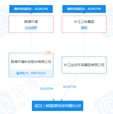 2020年7月,路德環(huán)境與長江三峽集團展開合作,成立武漢三峽路德環(huán)保技術有限公司,路德環(huán)境占股50.002%。